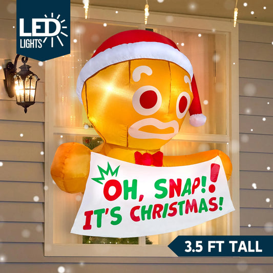 3.5ft Christmas Inflatable Gingerbread Man with Oh Snap Banner Broke Out from Window