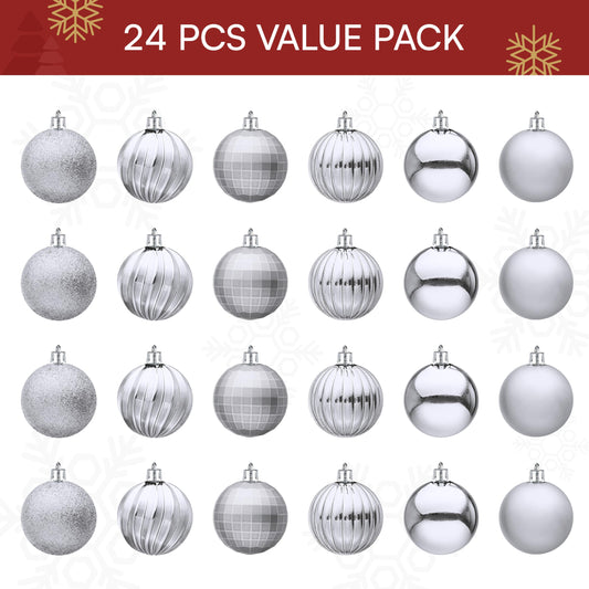 24 Pcs 2.36" Silver Christmas Balls Ornaments
