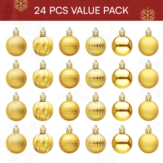 24 Pcs Gold Mini Christmas Balls Ornaments