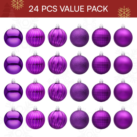 24 Pcs 2.36" Purple Christmas Balls Ornaments Set