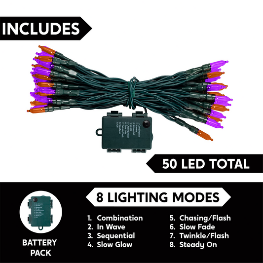 100-Count 34.6ft LED Orange & Purple Halloween String Lights with 8 Lighting Modes