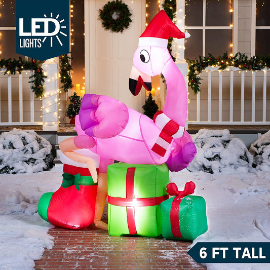 6ft Tall Elegant Flamingo Christmas Inflatable