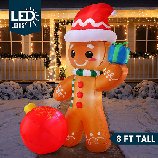 6 FT Tall Inflatable Gingerbread with Ornament Christmas Inflatable with Build-in LEDs
