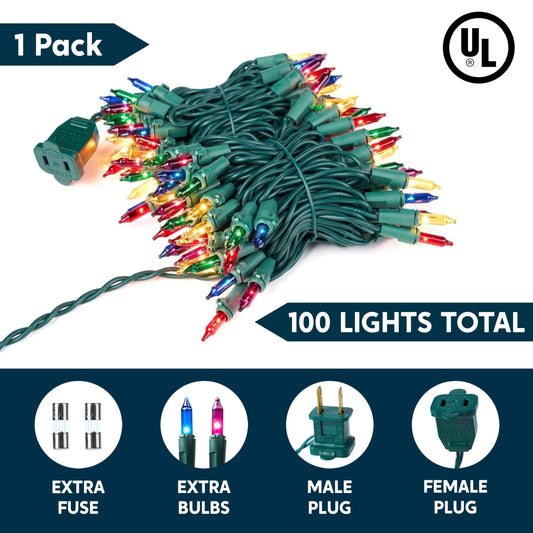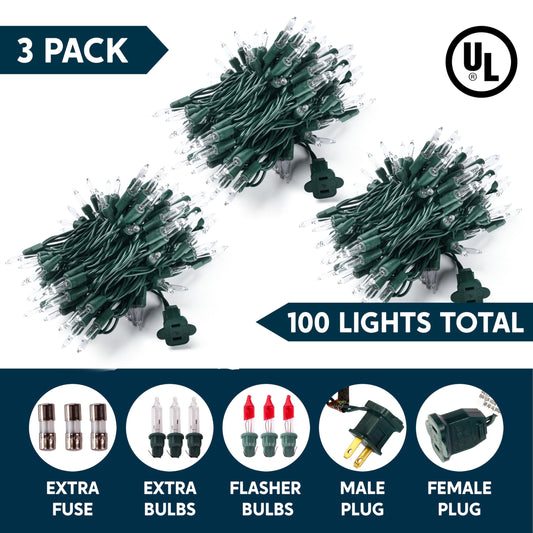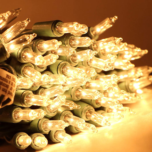 100 Counts Clear Green Wire Christmas Lights Set of 4