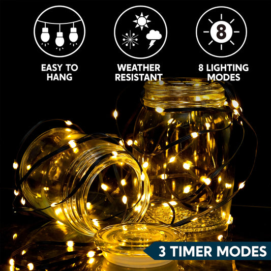 200 Multicolor LED Green Wire String Lights, Battery Powered (8 Modes, 6 Hr Timer)