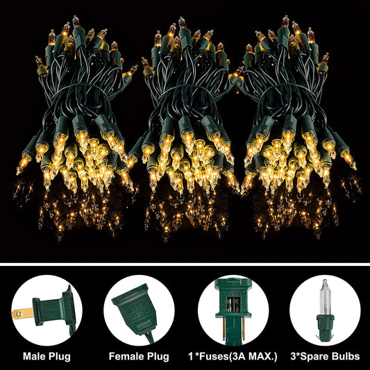 150 Counts Clear Green Wire Christmas Lights Set of 2