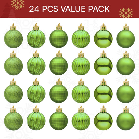 24 Pcs 1.6" Lime Green Christmas Balls Ornaments Set