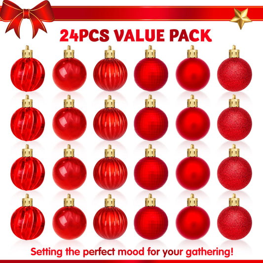 24 Pcs 1.6" Purple Christmas Balls Ornaments Set