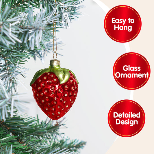 Strawberry Fruit Blown Glass Mini Christmas Ornaments for Christmas Tree Hanging Small Ornament Outdoor Christmas Decorations Indoor