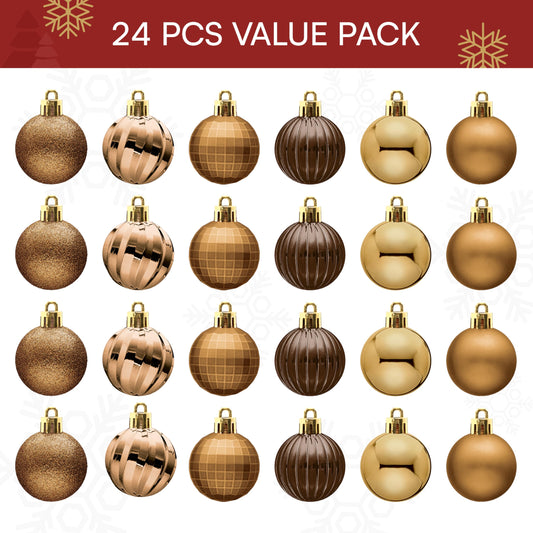 24 Pcs 2.36" Brown Christmas Balls Ornaments Set