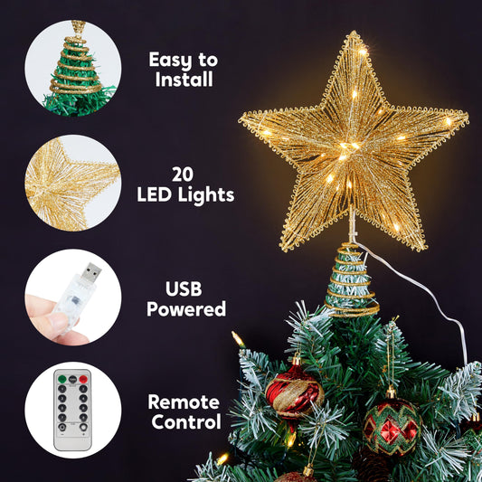9.5" Golden Christmas Star Tree Topper Radial Design