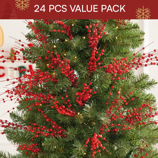 24 Pcs Christmas Tree Berry Stem (Champagne)