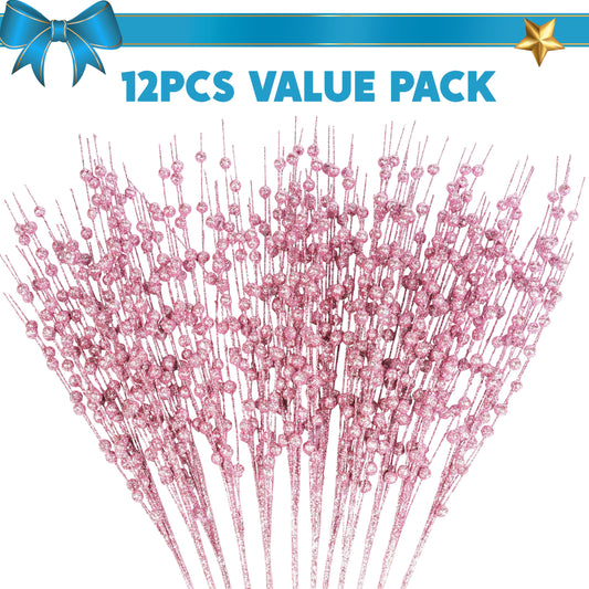 12Pcs 17” Pink Christmas Berry Stem Ornaments