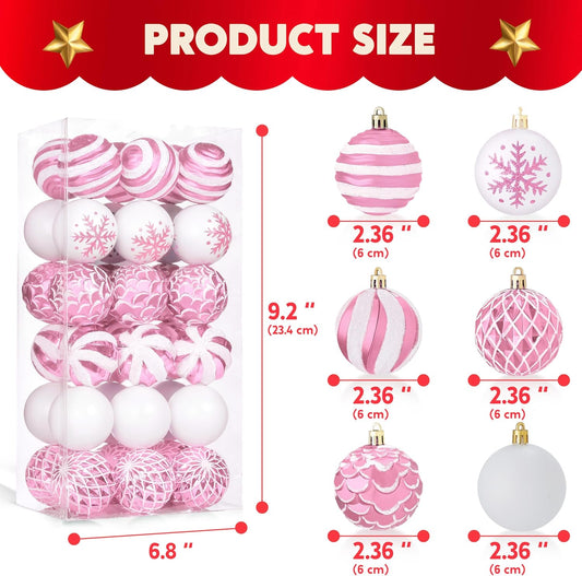 36 Pcs Pink and White Christmas Ball Ornaments Set