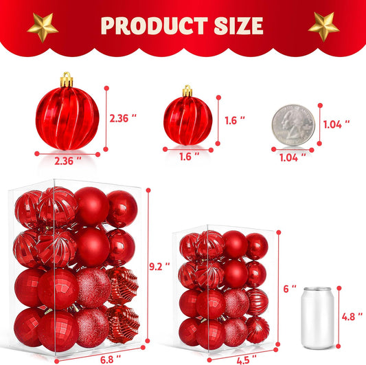 24 Pcs Red Christmas Balls Ornaments Set