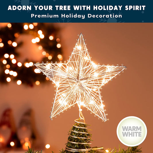 Sliver Star Tree Topper Metal, Warm White