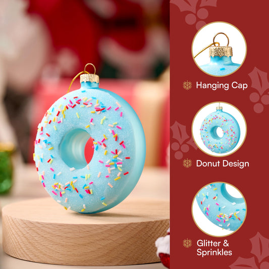 Donut Food Mini Christmas Ornaments Blue
