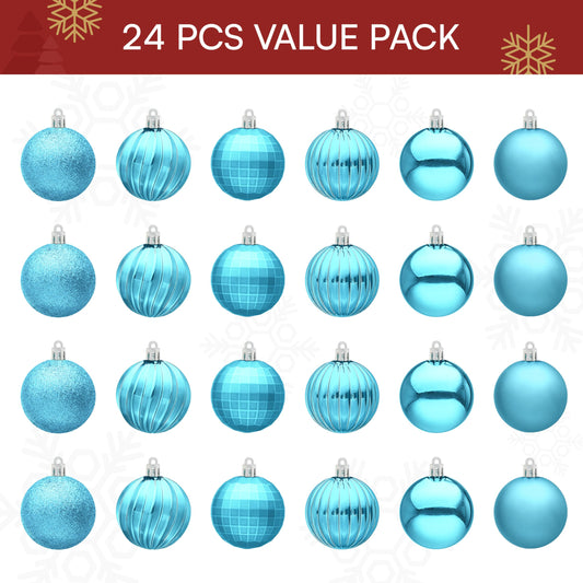 24 Pcs Baby Blue Christmas Tree Ornaments Set
