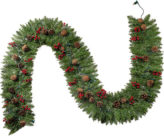 9 ft Artificial Garland with100 LED Lights & Decorations