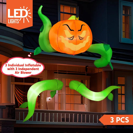 3 Pcs Halloween Inflatable Pumpkin Head with Tentacles