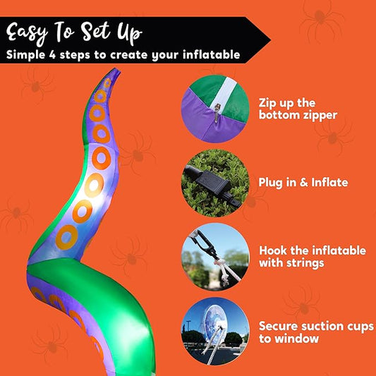 3Pcs LED Octopus Tentacle Halloween Inflatable Window Breaker, 4.5ft, 5ft, 6ft