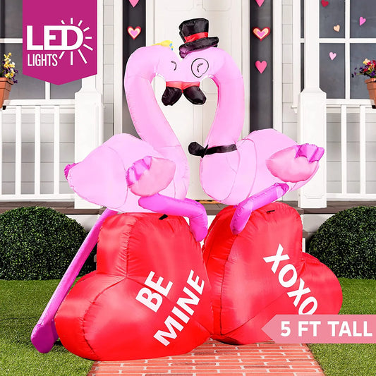 5FT Tall LED Lights Flamingos Couple Valentines Day Holiday Inflatable Decoration