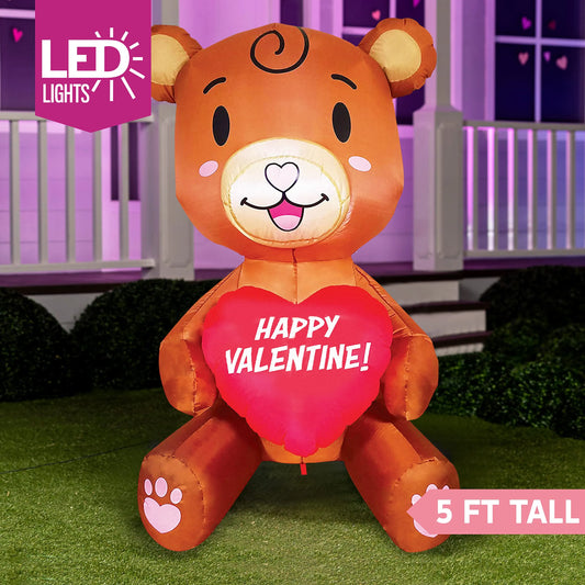 Tall Brown Bear with Heart Valentine Inflatable (5ft)