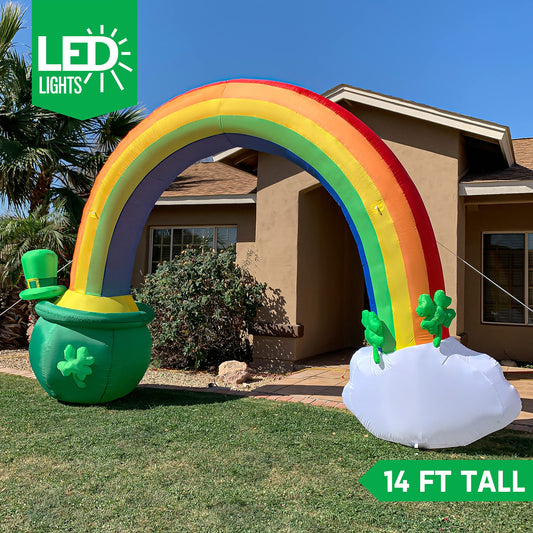 Giant St Patricks Day Rainbow Arch Inflatable with LED Light Build (10 ft)
