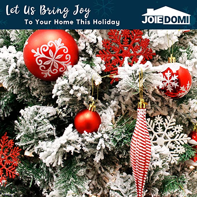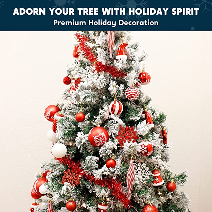 - SUPER VALUE PACK. Our Fantastic Red & White Christmas Decoration set includes 133 pcs Assorted Christmas Ball Ornaments of 15 Red Shiny Balls, 15 White Balls, 14 Red Matte Balls, 13 Disco Balls, 13 Red Glitter Balls, 12 Stripes Icicles, 12 Zigzag Balls, 10 Red Snowflakes, 9 White Snowflakes, 8 White Glitter Balls, 4 Quilted Balls, 2 Swirl Balls, 2 Spirals Balls, 2 Snowflake Balls, 2 Christmas Tree Balls. Perfect for indoor and outdoor decorations. Measuring 1.57, 2.36, 3.15 inches.