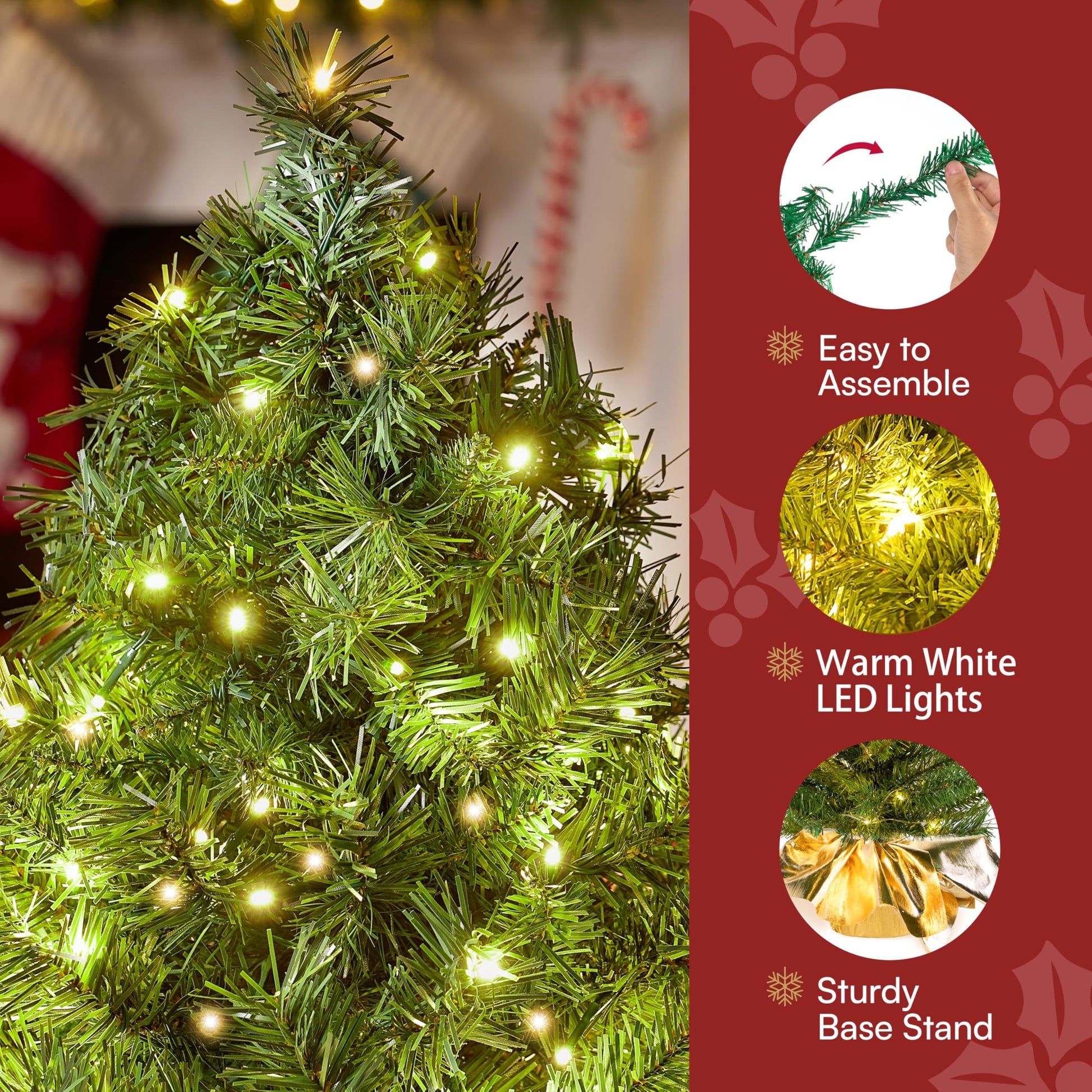 - Perfect Christmas Decorations: This pre-lit Christmas tree is ideal for christmas decorations indoor. With its compact size and beautiful warm LED lights, this 2ft Christmas tree is the ultimate christmas decor piece.