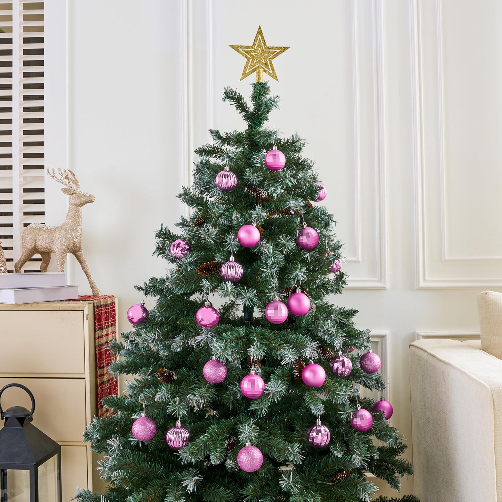 24 Pcs 2.36" Pink Christmas Balls Ornaments Set