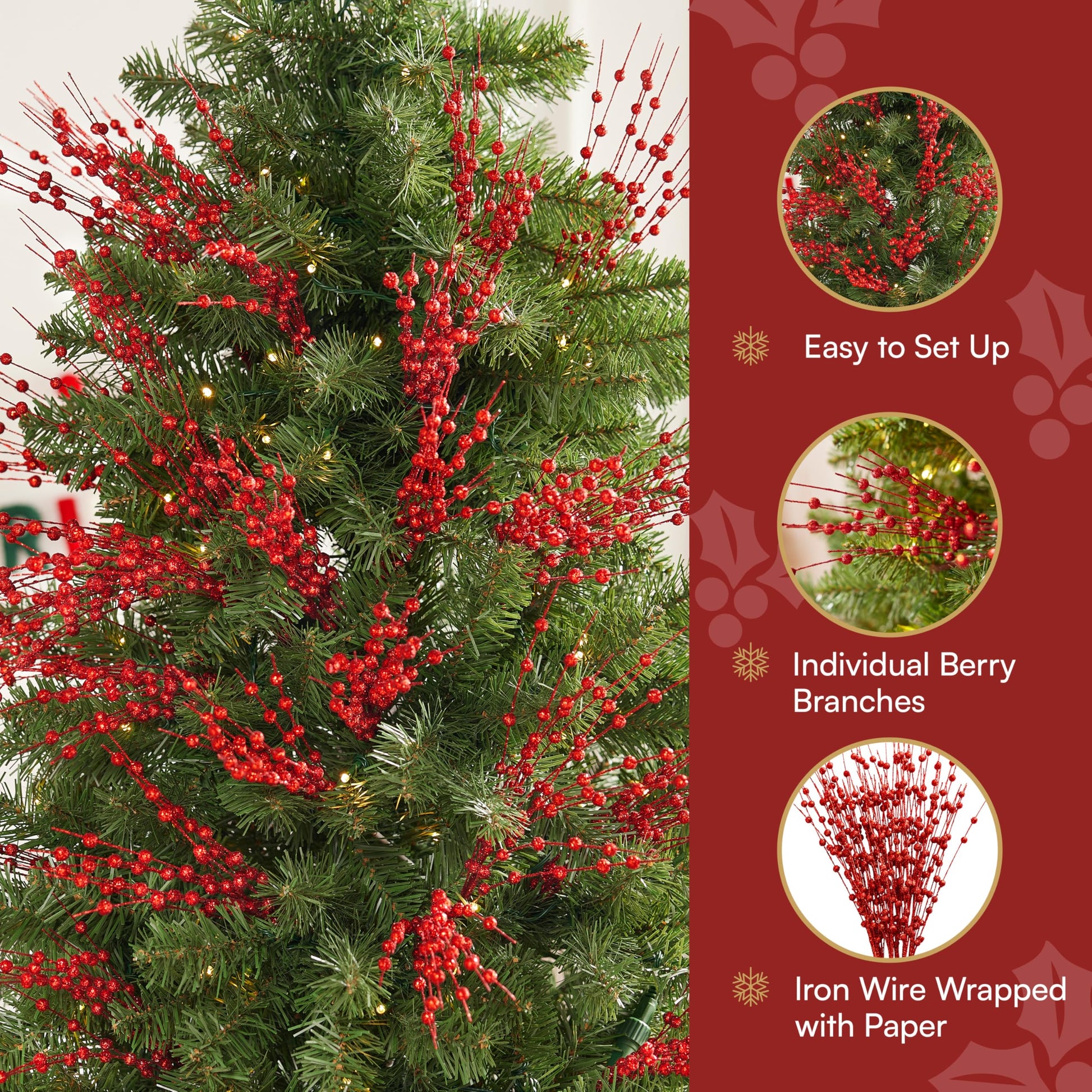 24 Pcs Christmas Tree Berry Stem (Red)