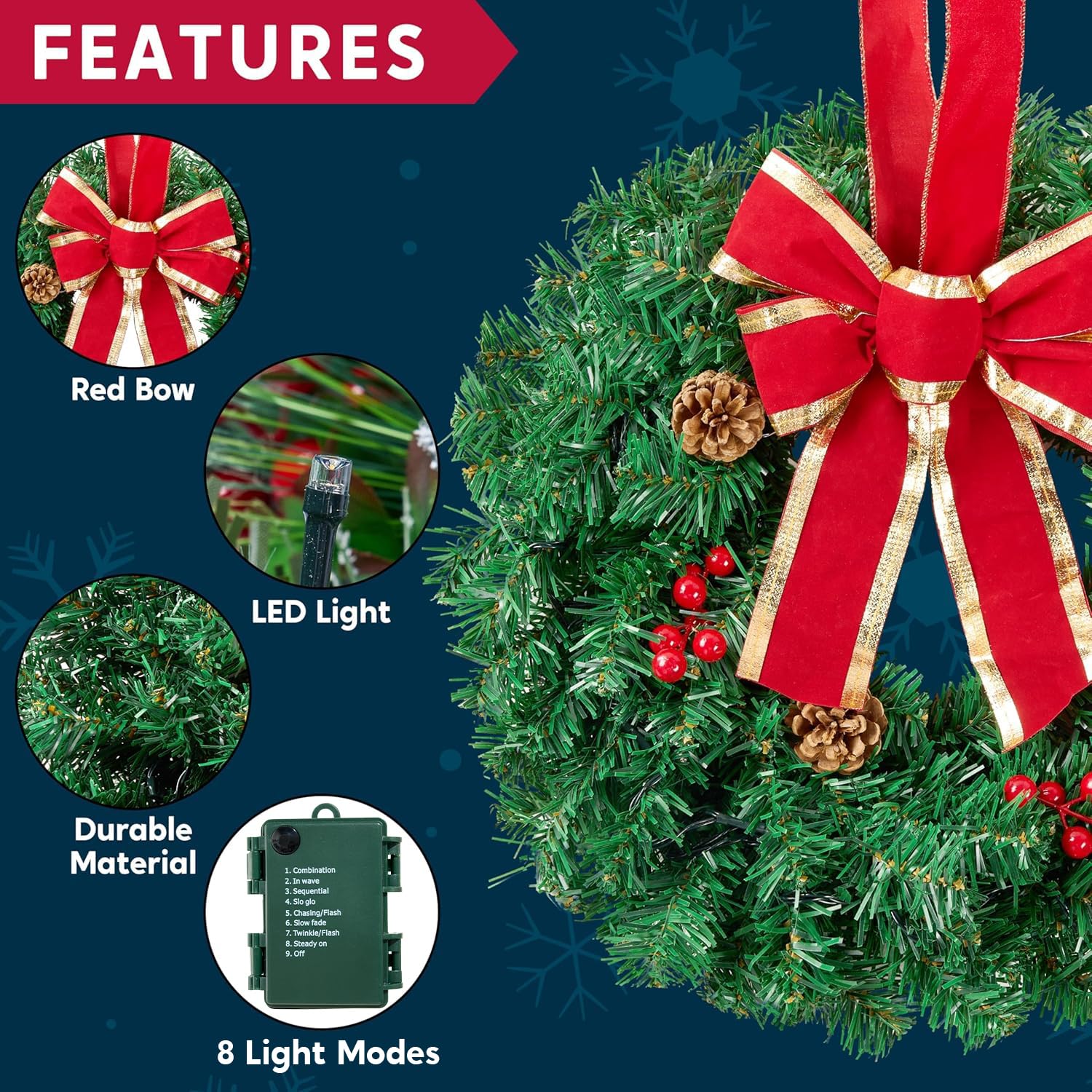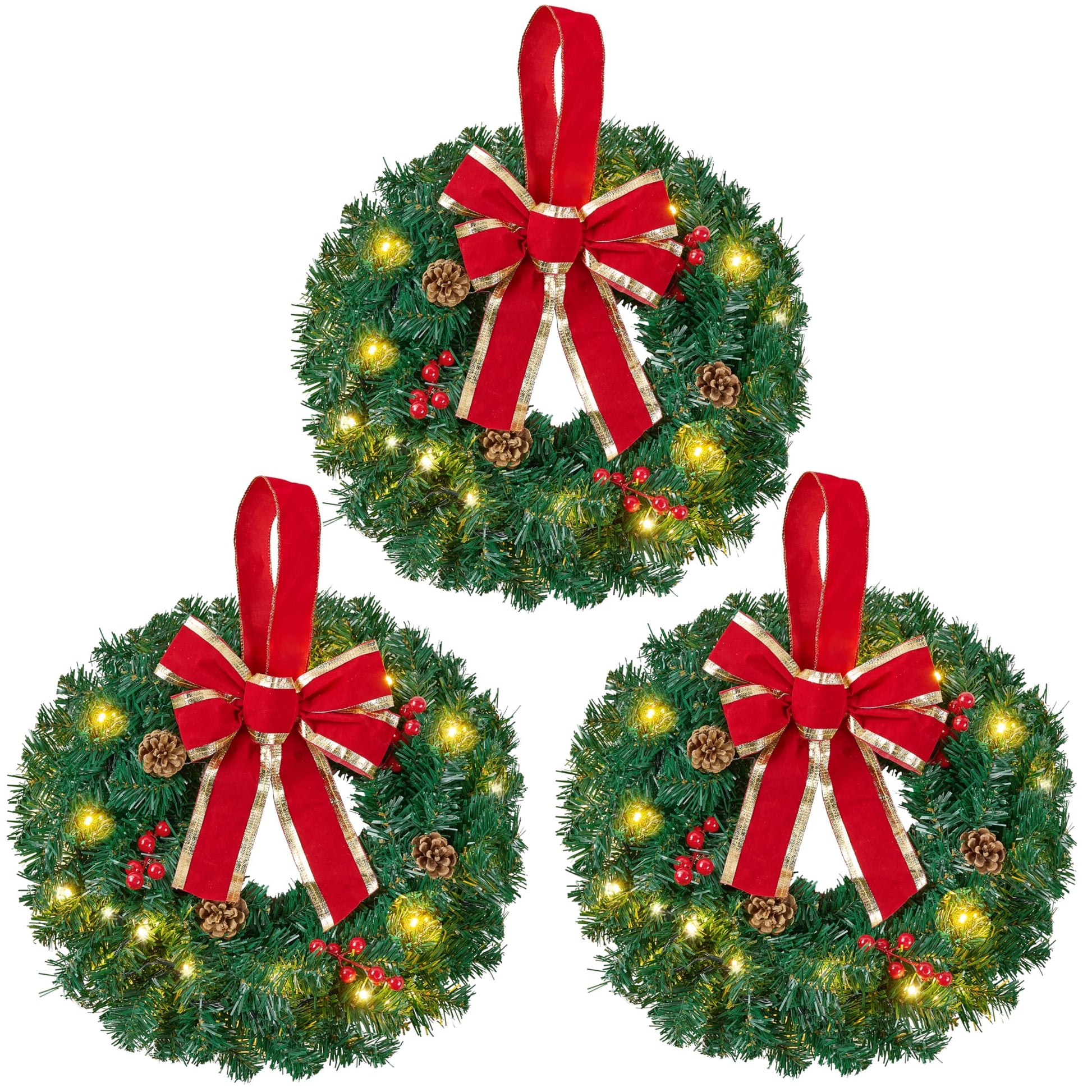 - VIVID XMAS DECOR. These Christmas Wreaths include 3 Pieces of Cordless Pre-Lit Berry Wreaths and a vibrant to add charm to your place on a wonderful winter and Christmas.