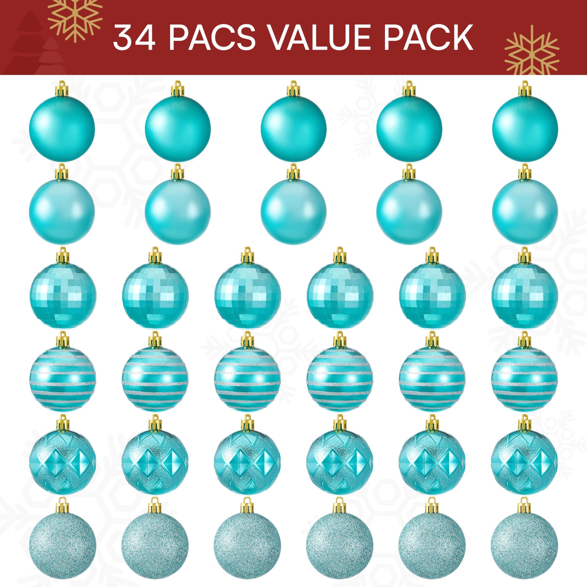 - REAL FUNCTION. These Christmas Party Decorations feature a 34 count shatterproof Christmas balls set measuring 2.36 inches. It is made with shatterproof material for safety, durability, and longevity!