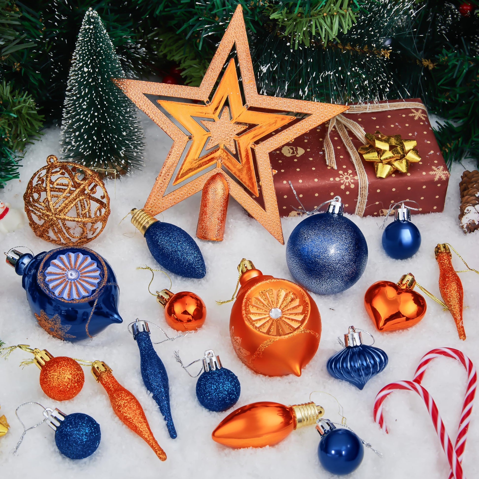 36 Pcs Blue and Orange Christmas Tree Ornaments with Star Topper and Heart