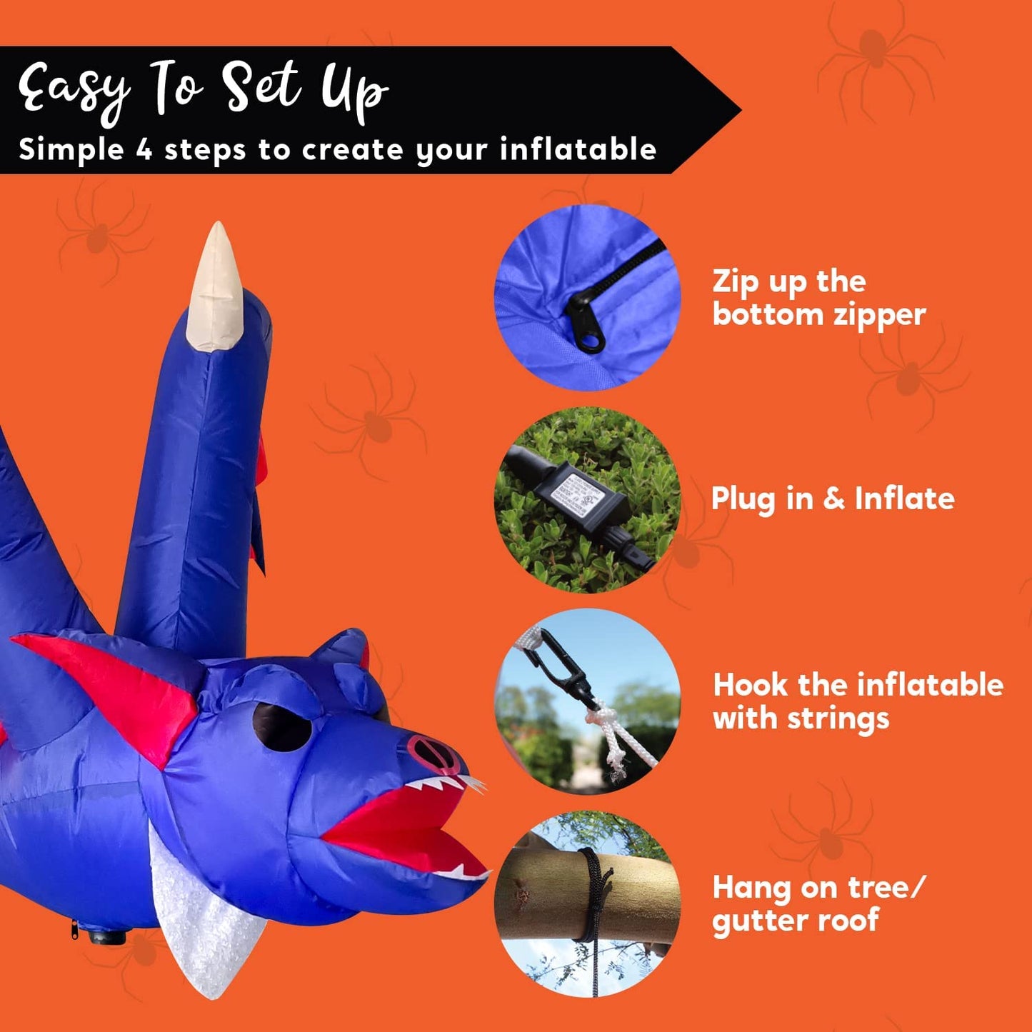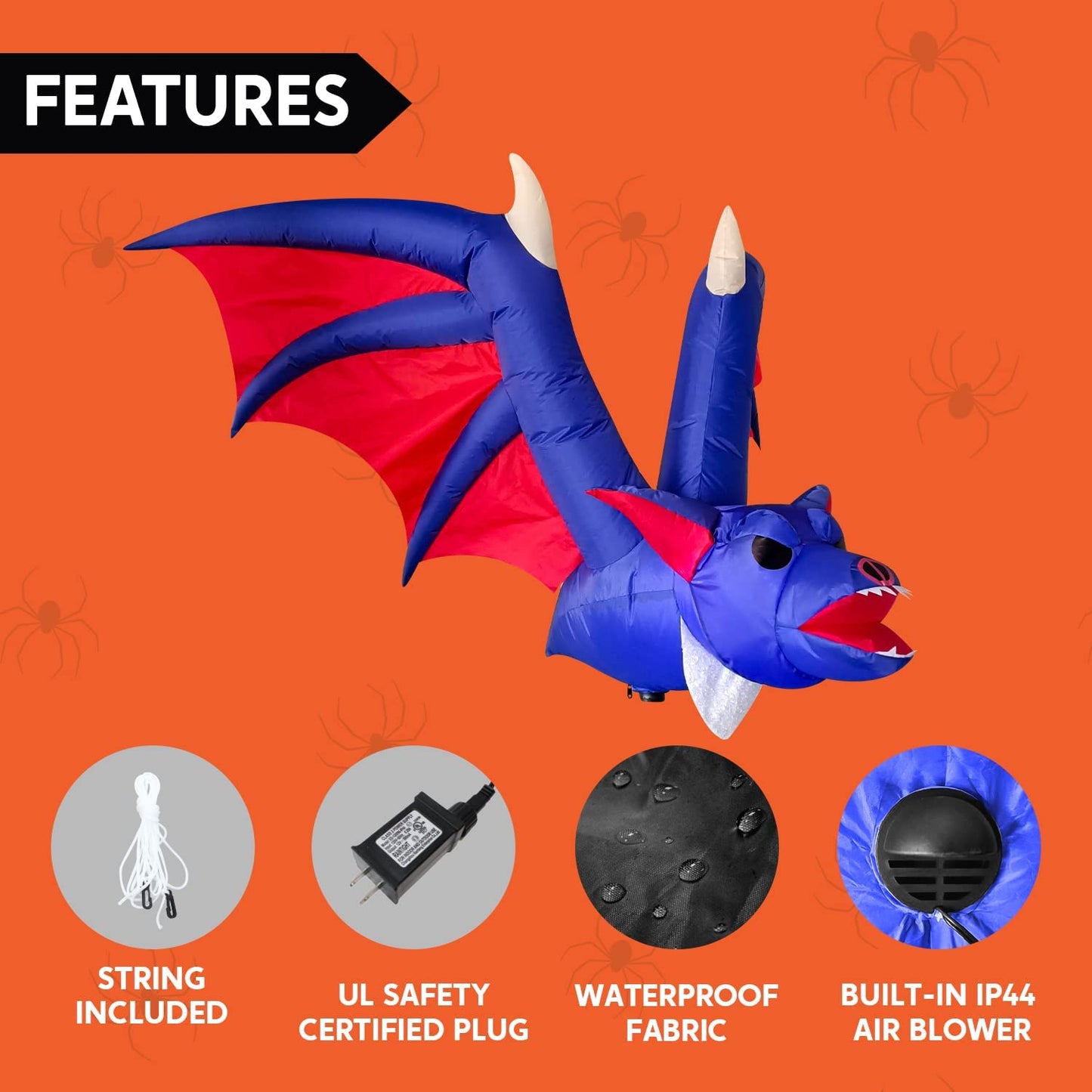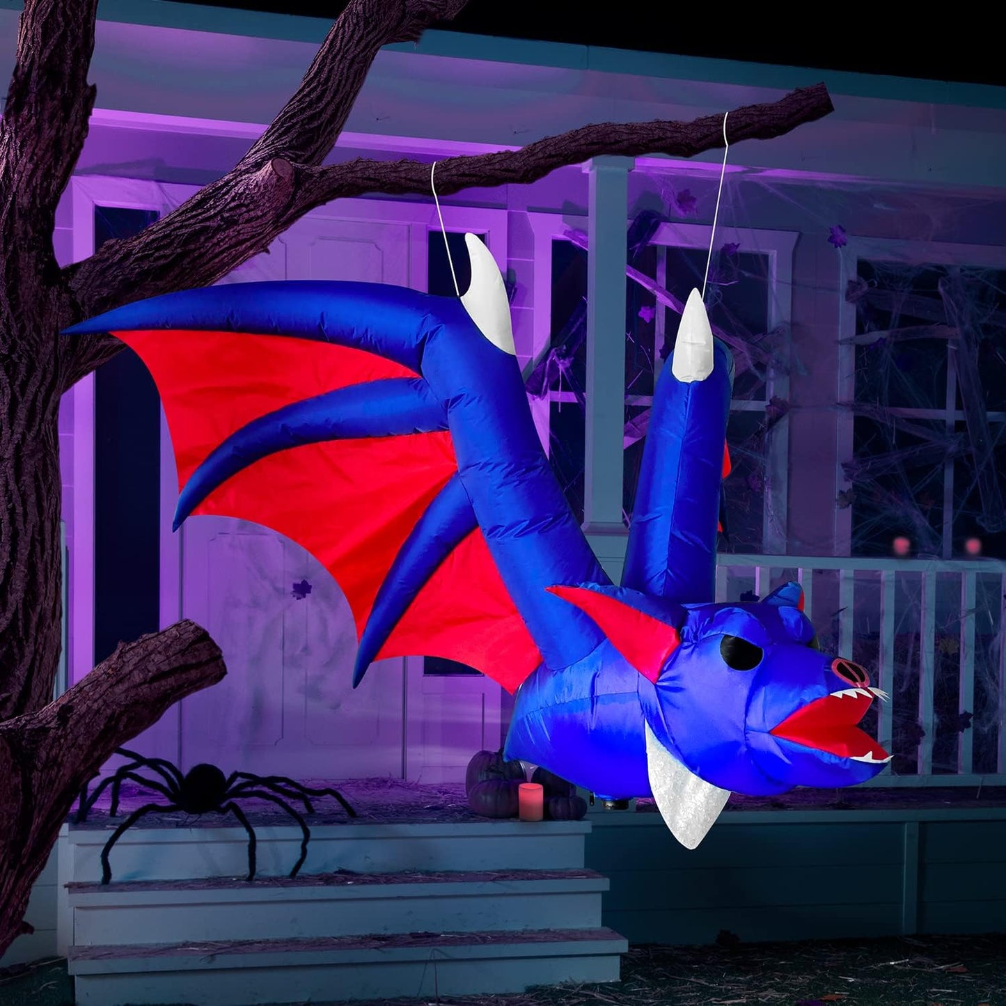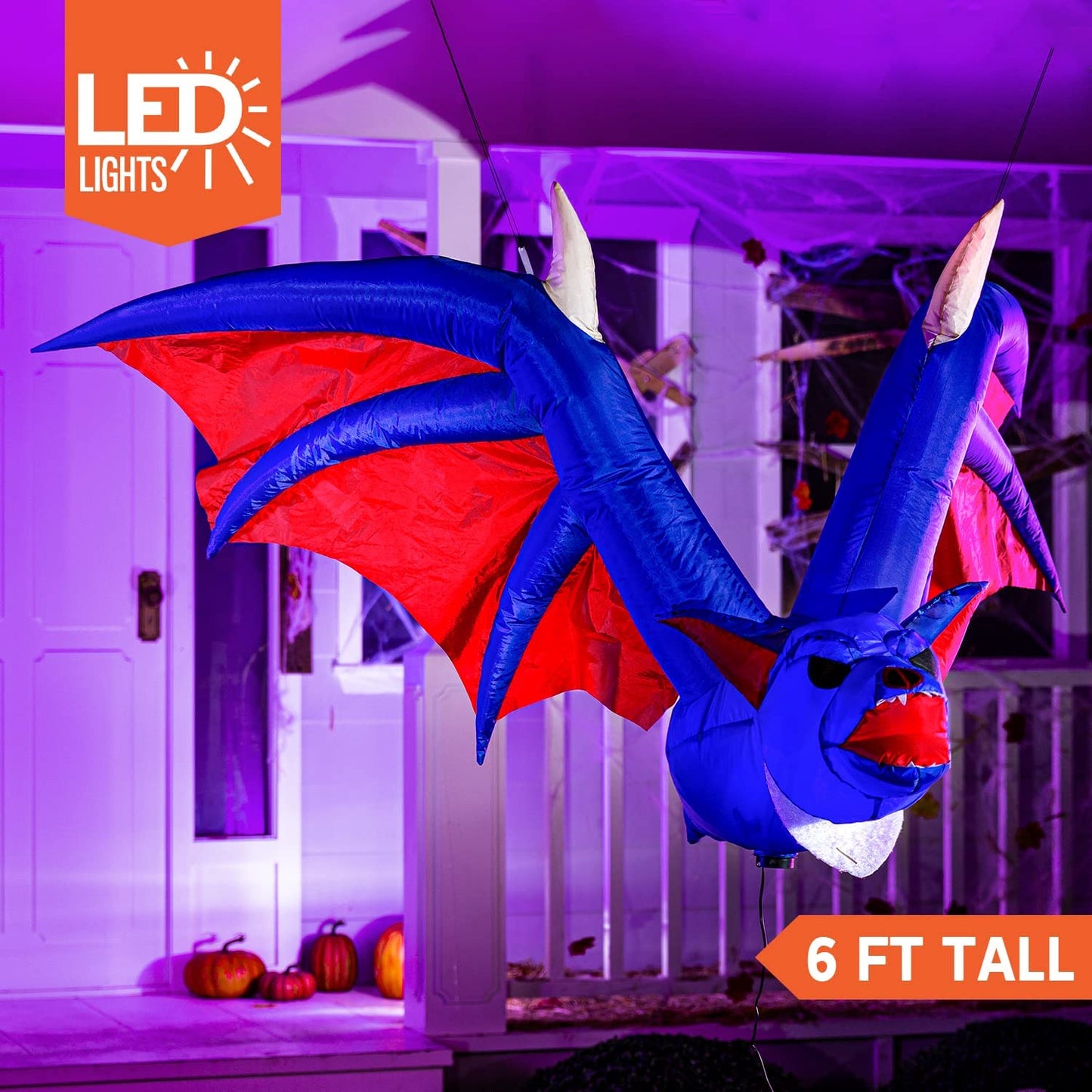 - Our 4 feet tall hanging giant bat halloween inflatable comes with extended cords, fastened ropes, and a plug with UL certification.
