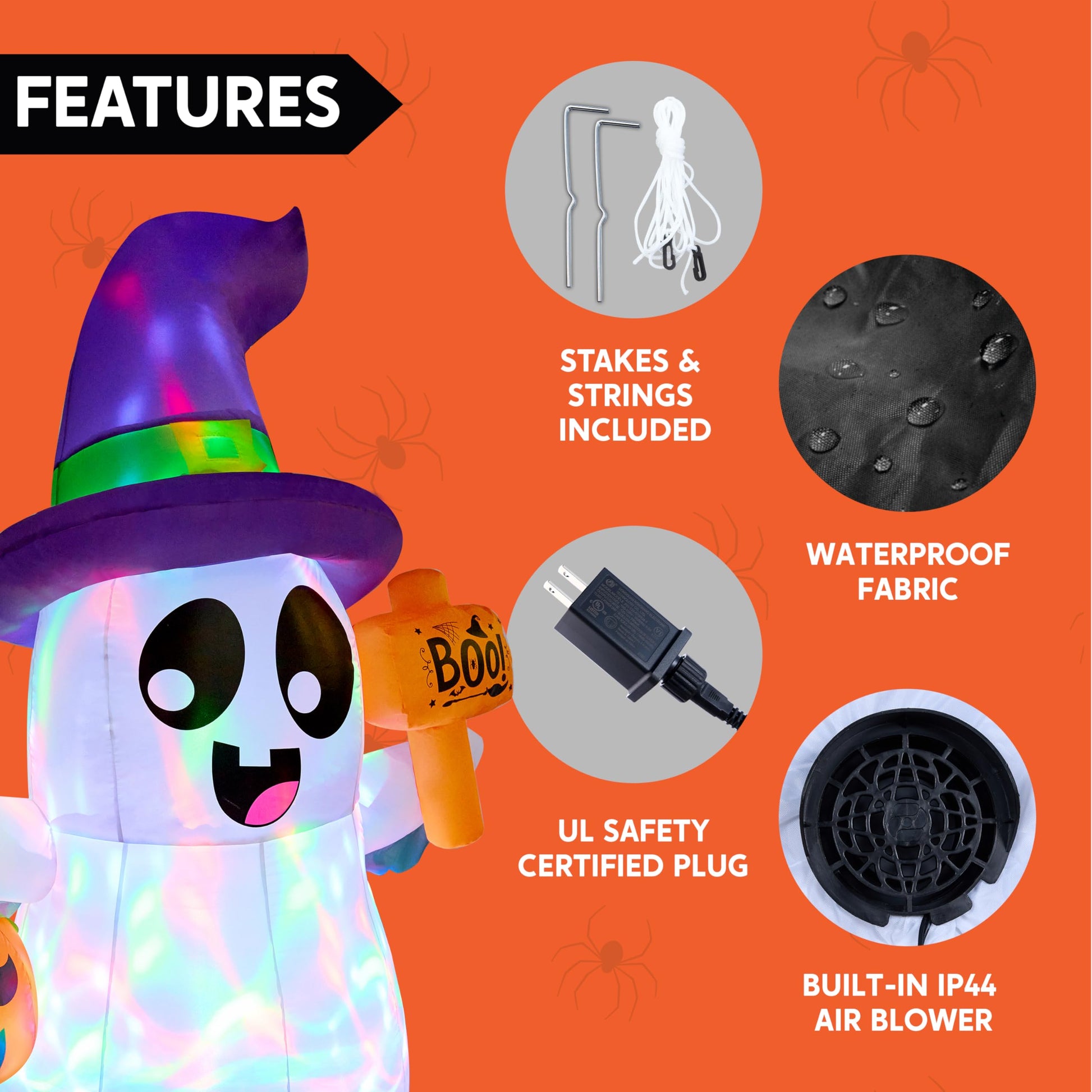 - UL Certification. Safety is paramount, which is why this cute inflatable ghost decoration is UL certified. You can enjoy its charming design and dynamic lights with peace of mind, knowing that it meets rigorous safety standards for electrical products.