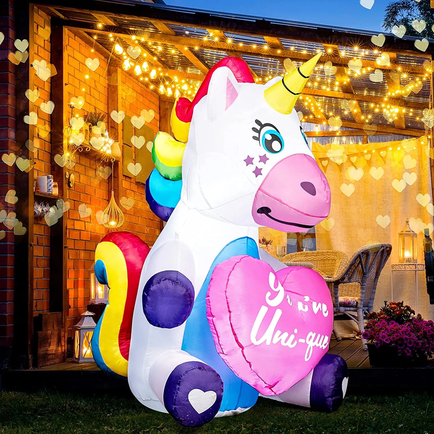 - Our 5FT Tall Sitting Unicorn Inflatable Yard Decoration has bright built-in LED lights. Light up in the evening for the best attraction to neighbors and guests.
