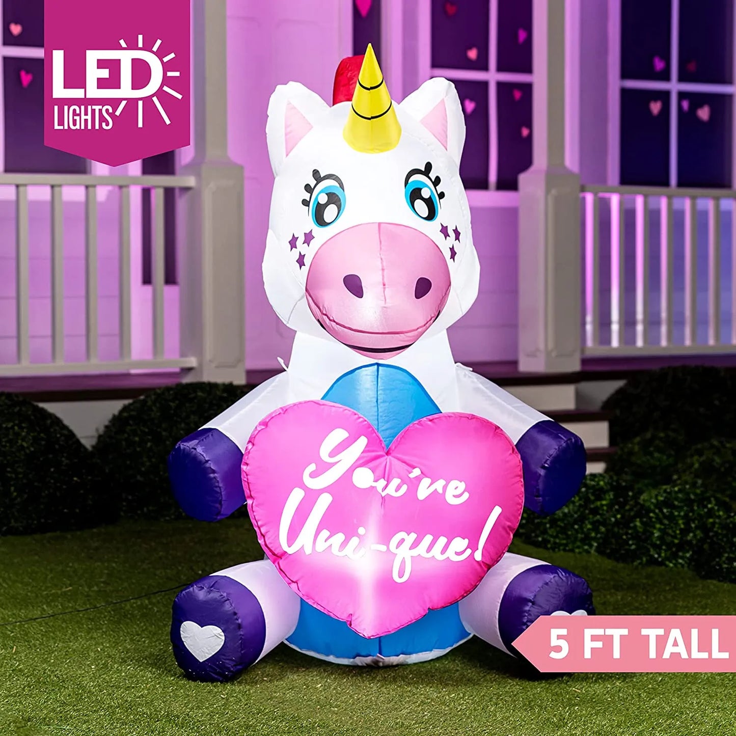 - Unique design & super value pack:5 feet sitting unicorn inflatable comes with an extended cord, ground stakes, fastened ropes, built-in sandbags, built-in LED lights, and a plug with UL certification.