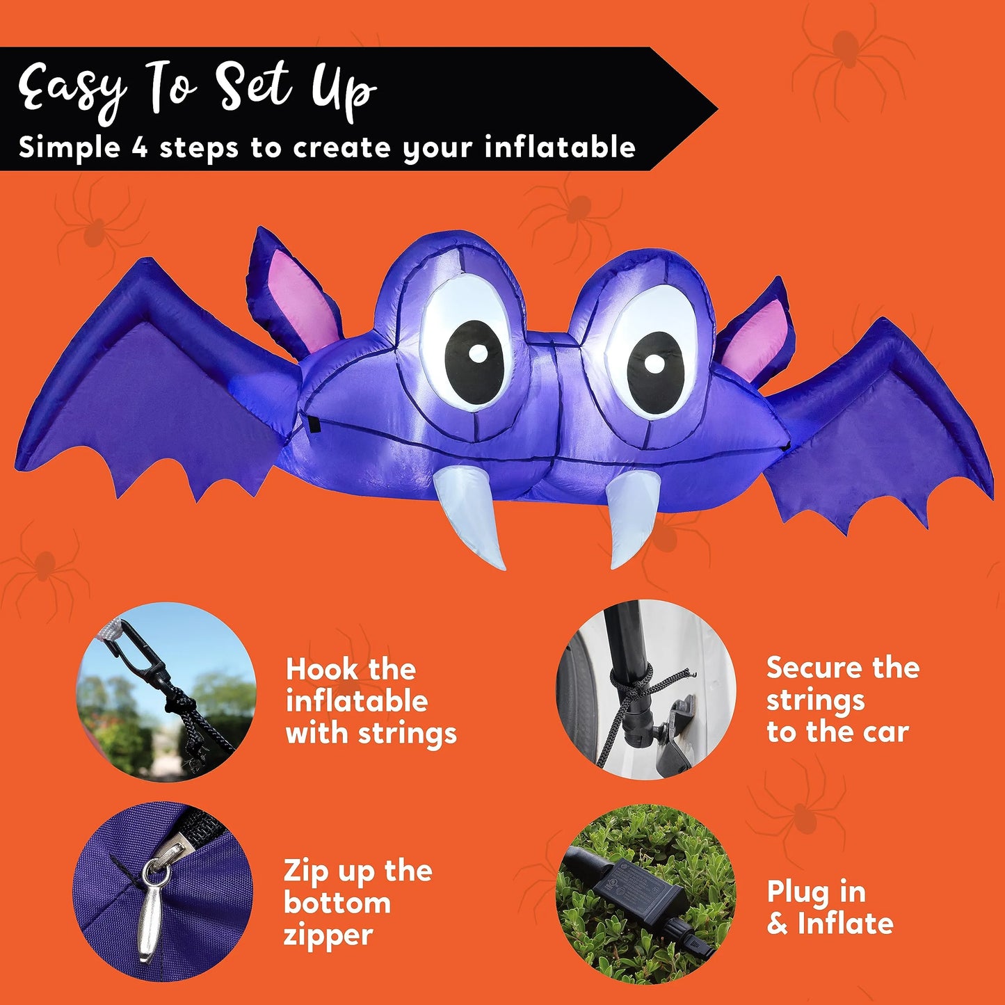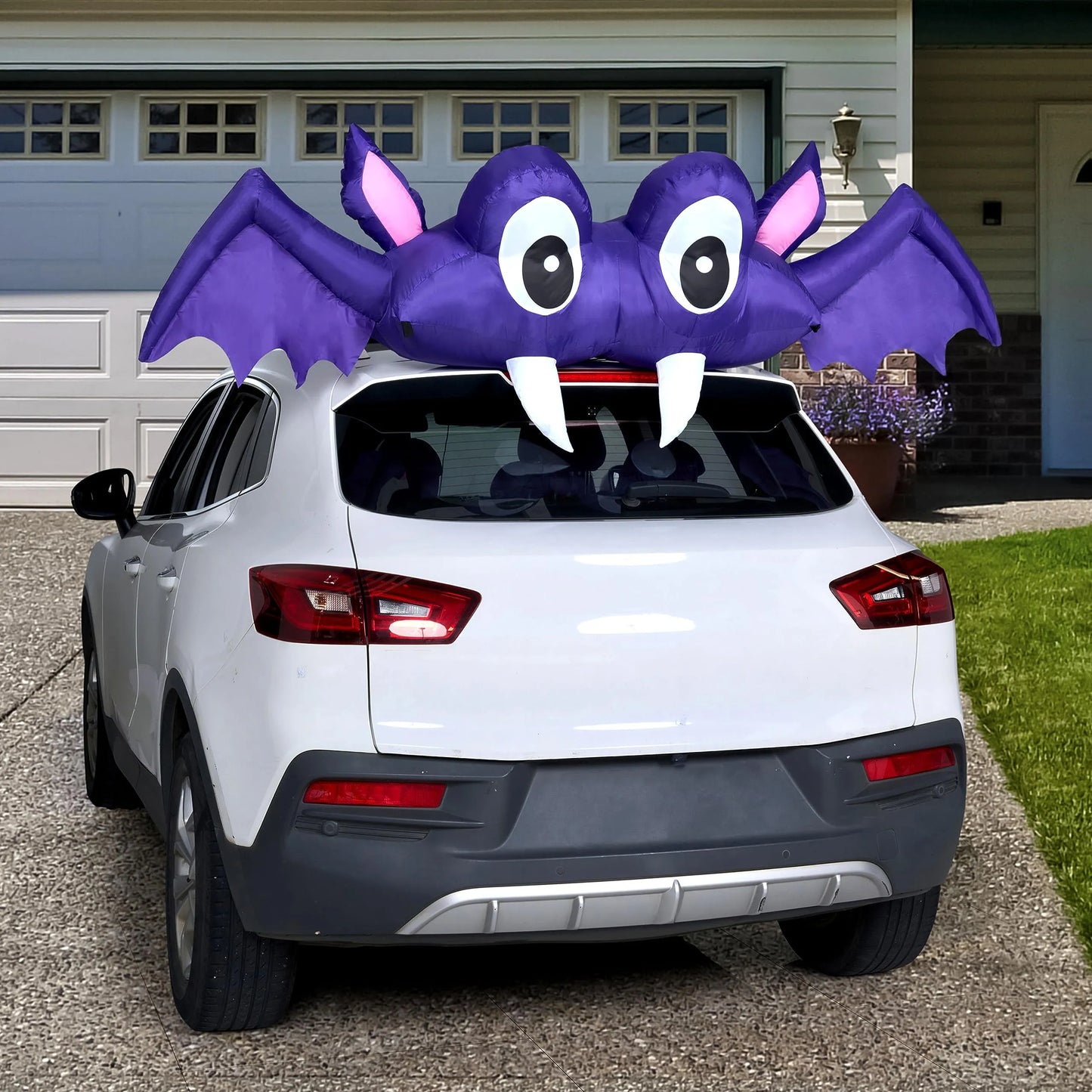 - Excellent Design. This inflatable bat car trunk decoration features a unique and eye-catching design that will make your Halloween celebrations stand out. The bat-shaped trunk adds a playful and spooky touch to your car's appearance. This inflatable comes with an extended cord, fastened ropes, built-in sandbags, and a car plug with UL certification.