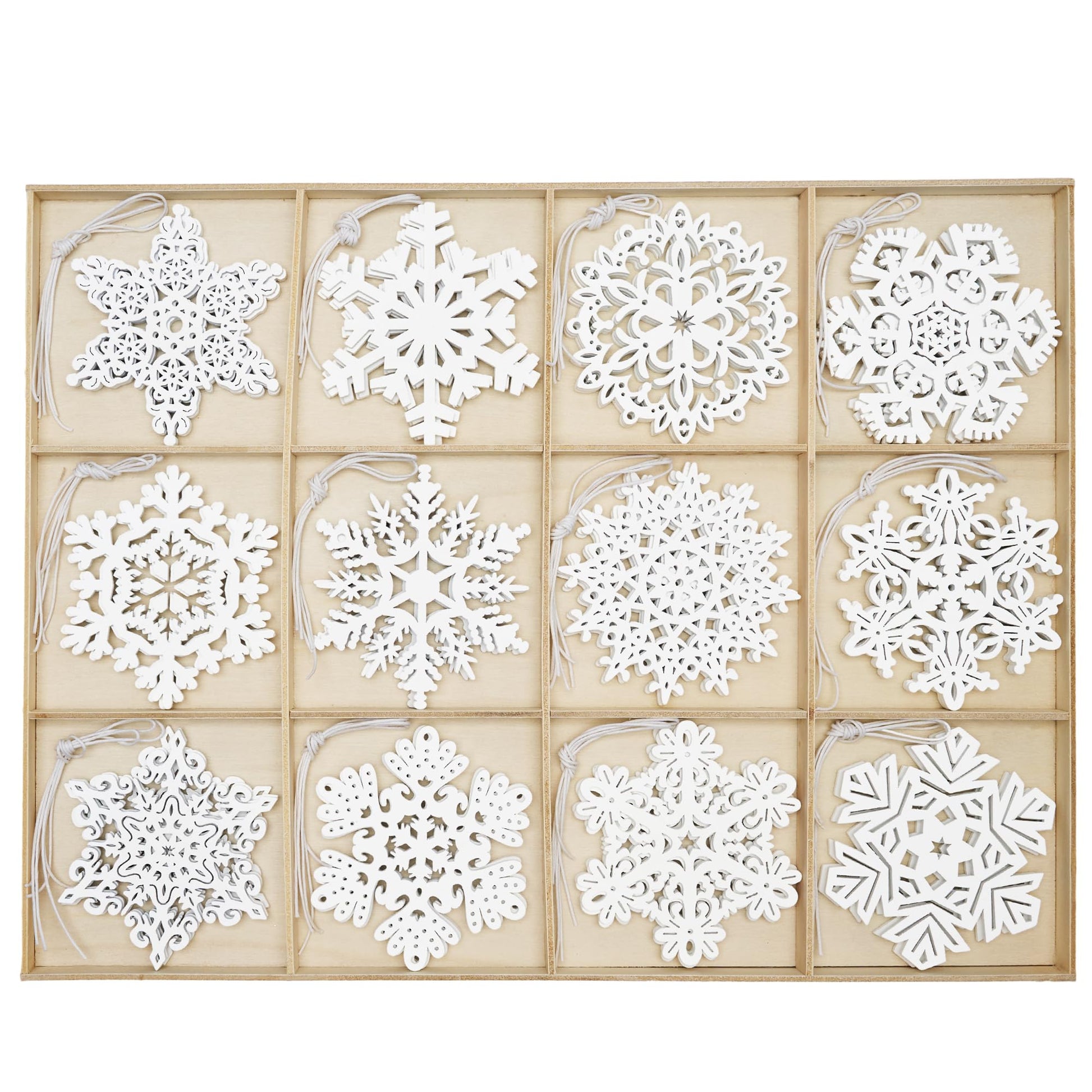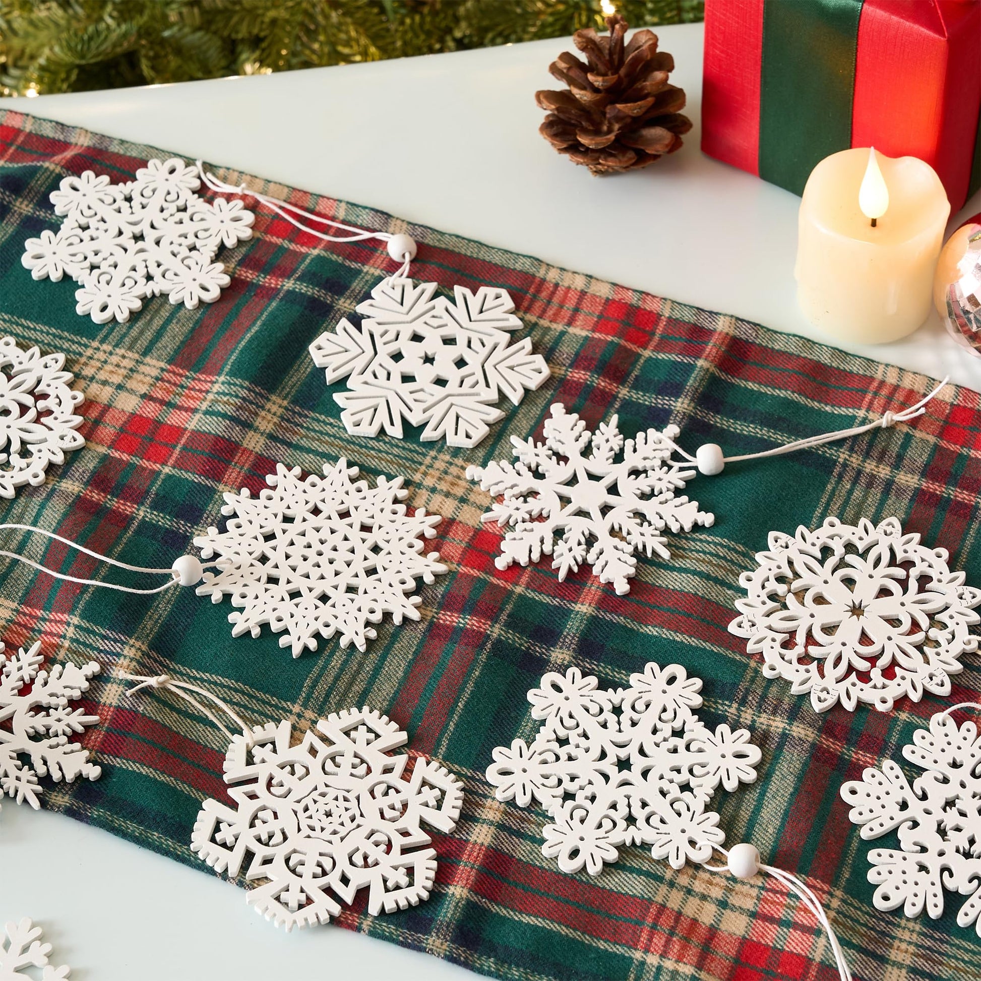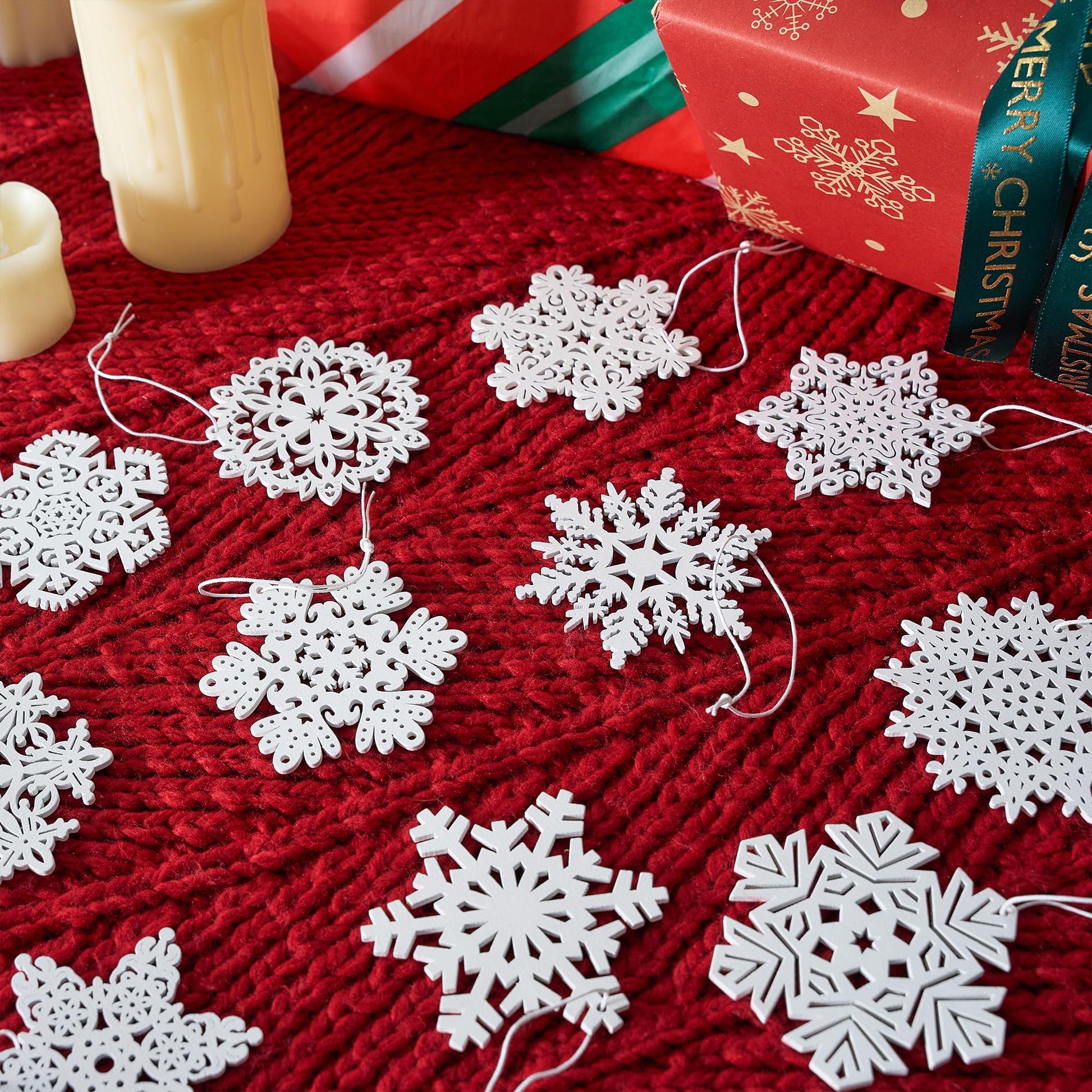 - PERFECT WINTER DECORATIONS:These white Christmas ornaments blend beautifully with any decor style. Whether hung on your tree or used as snowflake decorations around your house, these wooden Christmas ornaments add a classic and elegant winter charm. Your white ornaments for Christmas tree or mantel will shine bright this season!